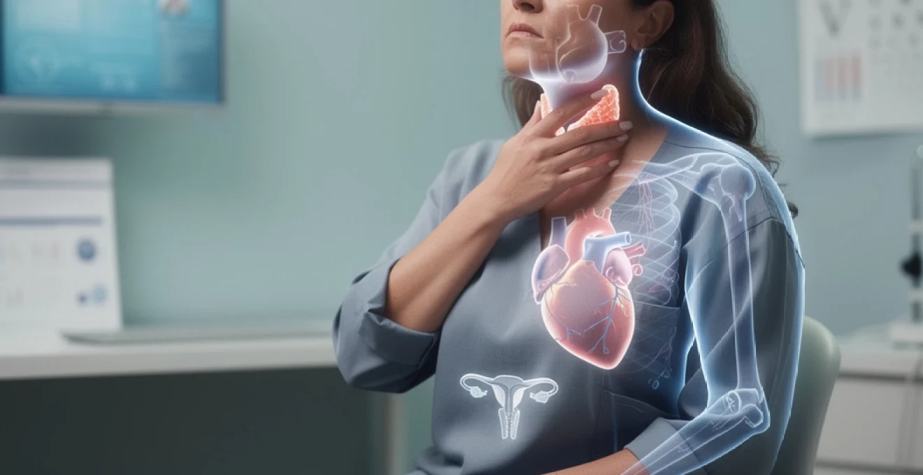 Cette perte de poids rapide peut être interprétée à tort comme une évolution « positive » par certaines patientes, notamment si elles cherchaient à maigrir. Pourtant, elle s’accompagne d’une fonte musculaire, d’une fragilité osseuse accrue (risque d’ostéoporose) et d’un déséquilibre global de l’organisme. Toute perte de poids non intentionnelle associée à des palpitations, une nervosité ou des troubles du sommeil doit faire évoquer un hyperfonctionnement thyroïdien.